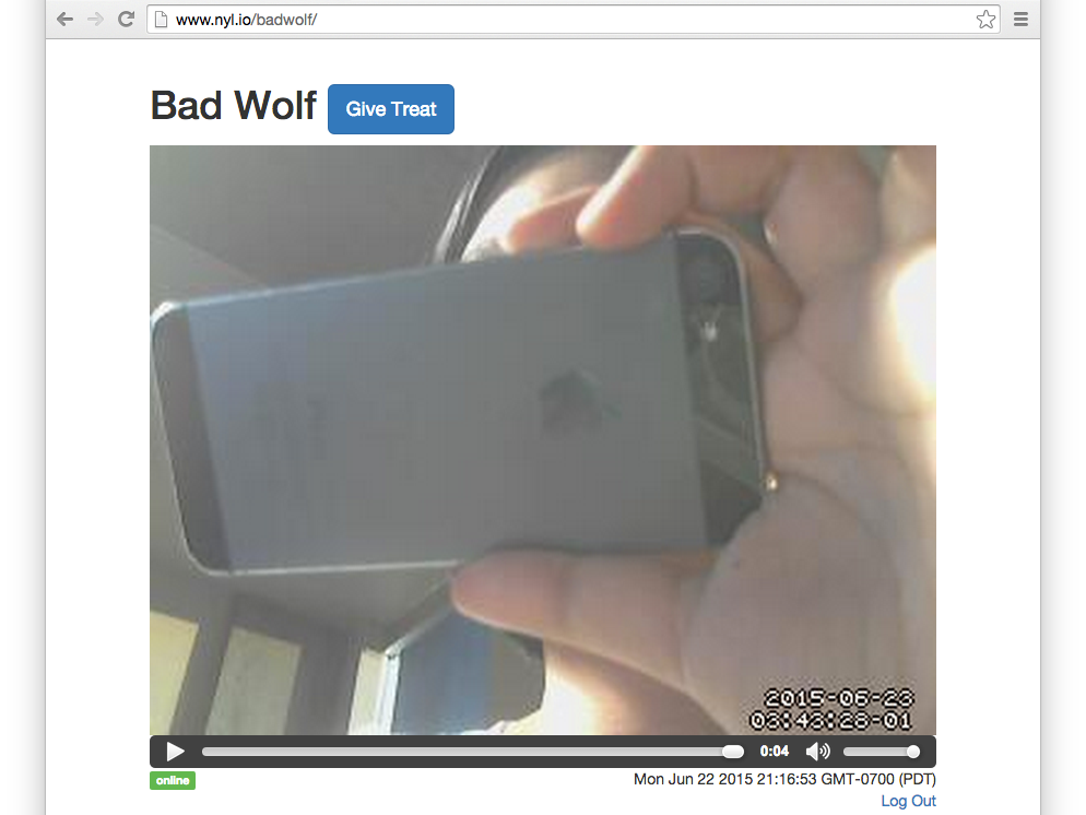 Hardware made with 3D Printed case, custom PCB design, Raspberry Pi (latest version not shown here is based on ESP8266 Wifi Chip and ATtiny85), stepper motor (with L293D motor driver). Software uses Arduino code, Python, Node.js. Audio/Visual uses motion, LAME, Firebase (the local device takes images in real time and uploads the image to Firebase as a DataURL. Hack, I know. But it provides close to real time streaming, which is crucial for dog training.)