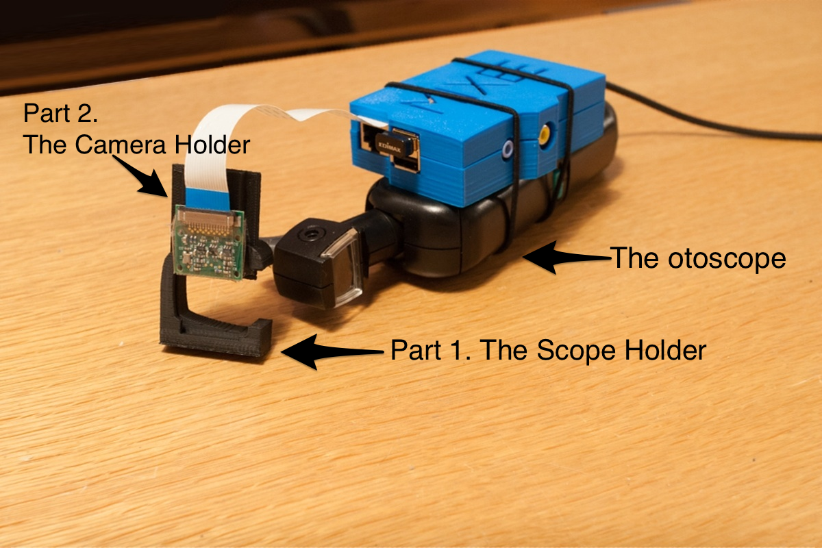 This device won first prize at the MIT 2014 Hacking Medicine hackathon. It's an attachment to otoscopes and ophthalmoscope (devices to see in ears and eyes). It allows the doctor to see through as usual, and take a photo by sliding a tiny camera in front of the eye piece.
