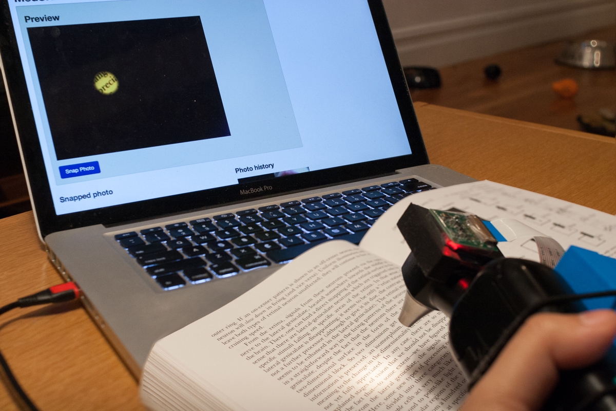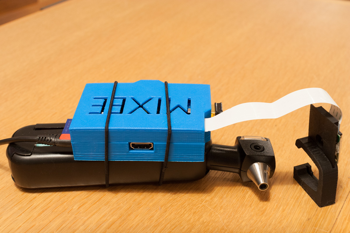 Made with Raspberry Pi (raspistill, mjpg_streamer), camera module, 3D printer