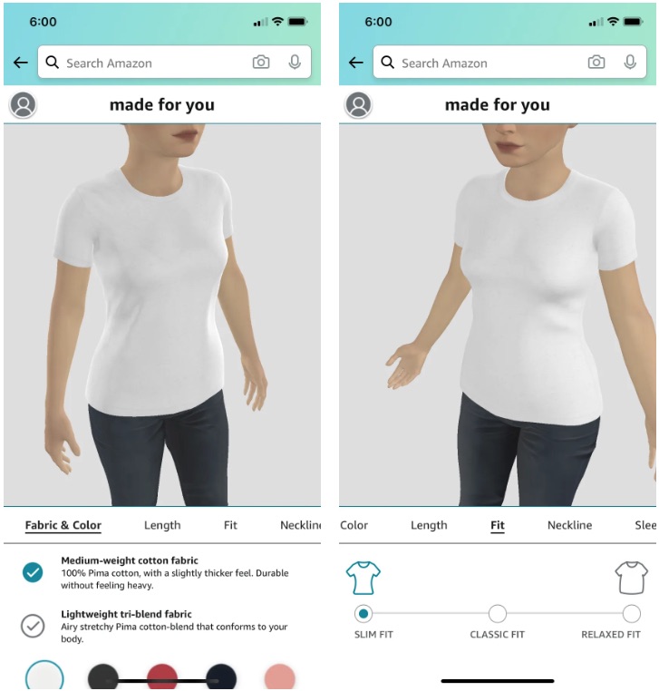 Dubbed by Vogue as the Perfect White T-Shirt", Made for You enables customers to get made to measure garments manufactured on demand, using groundbreaking technology in computer vision, machine learning, and 3D simulation.