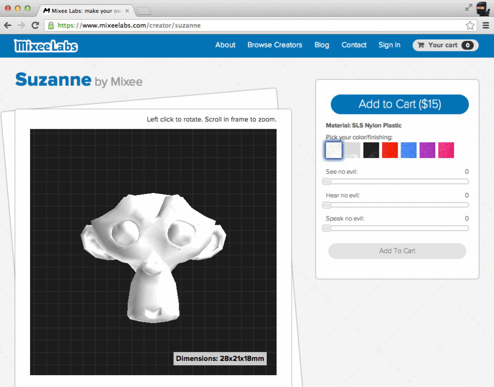In 2014 Mixee Labs partnered with Amazon to launch their 3D printing store. Our software drove their customizable product experience. In 2015, Amazon bought Mixee Labs' technology, and our team joined Amazon full time.